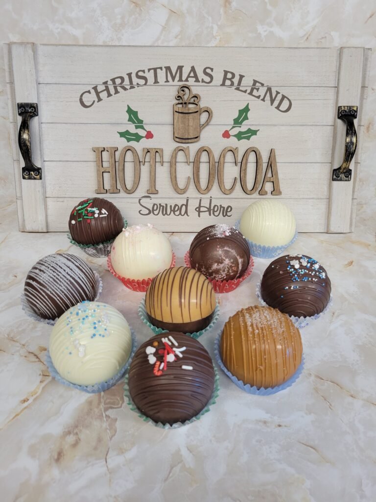 Who doesn’t love hot chocolate on Christmas morning? By putting some in your stocking, you can start the day off right. For those who don’t know, hot chocolate bombs are (usually) hollow chocolate spheres filled with hot chocolate powder and sometimes marshmallows and other sweets. Put them in hot milk or water and they dissolve to make a tasty cup of hot cocoa. And to toot our own horn a bit, we have partnered with Sweet Temptations, a local vendor, to sell some in our online store.
